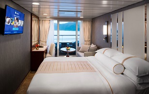On the starboard side of the Living Room, guests will find the Card Room for those who love a round of Bridge or other games. Four computers and interactive table tops are available for guest use during the voyage.